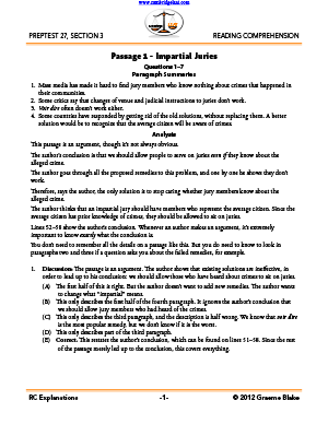 - complete explanations for the Reading Comprehension section from PrepTest 27 (December 1998)