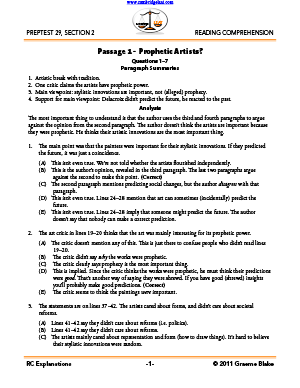 - complete explanations for the Reading Comprehension section from PrepTest 29 (October 1999)